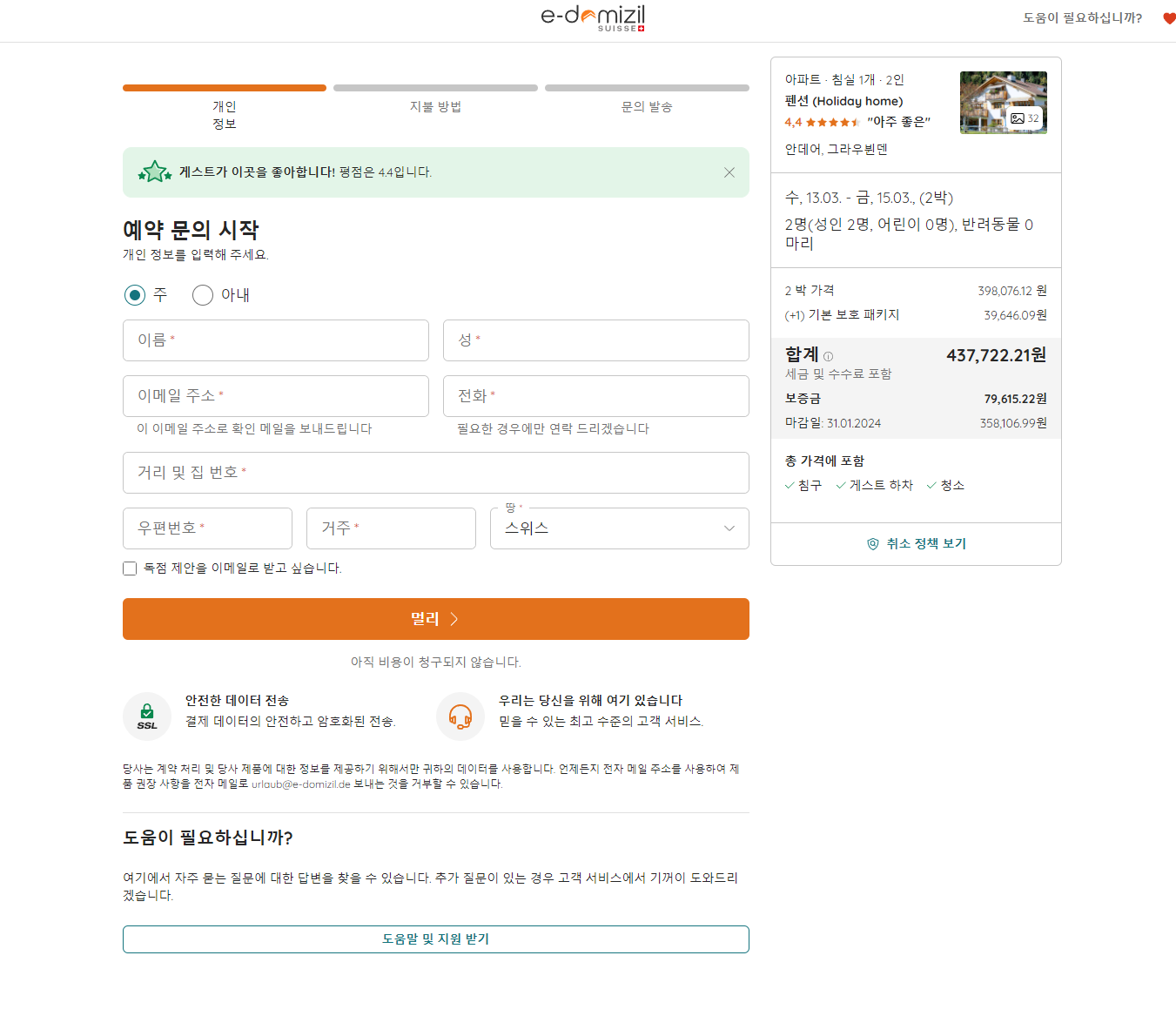 스위스 여행 샬레 두번째 예약방법!!!